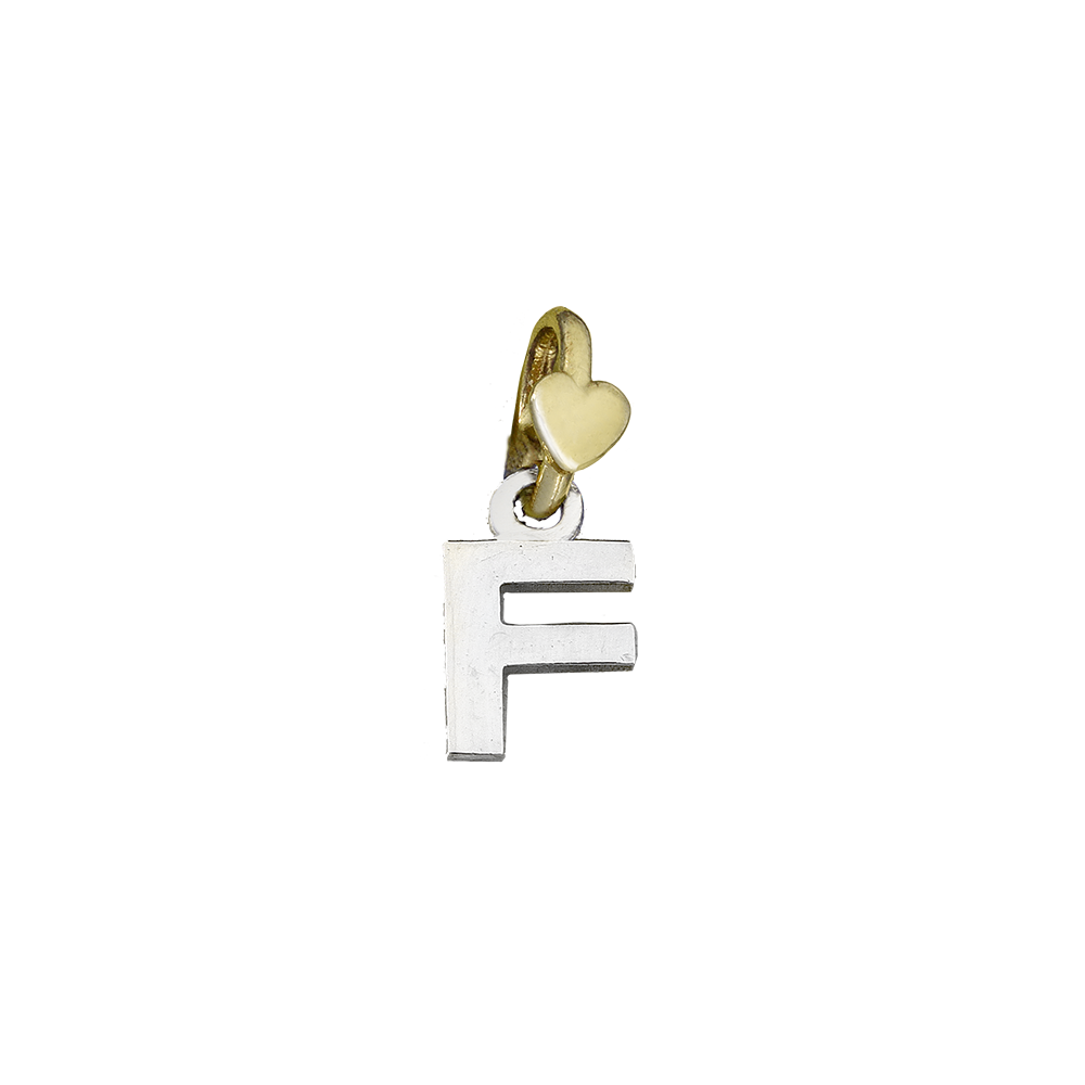 Ciondolo in argento 925 con contromaglia cuoricino in oro giallo 9kt della collezione lettere