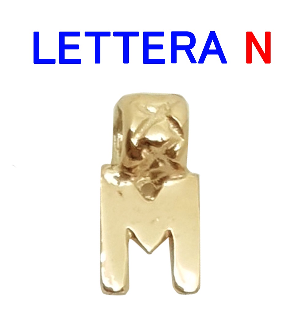 Ciondolo in oro giallo 9kt della collezione lettere, specifichiamo che è solo un ciondolo della lettera n
