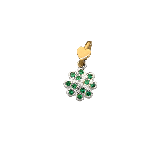 Ciondolo quadrifoglio della collezione “lucine” in argento 925°/°° e zirconi verdi con contromaglia cuoricino in oro giallo 9 kt