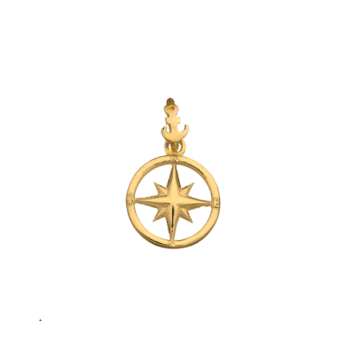 Ciondolo in oro giallo 9kt con contromaglia ancorina in oro giallo 9kt della collezione marinari soggetto Rosa dei venti “equilibrio”