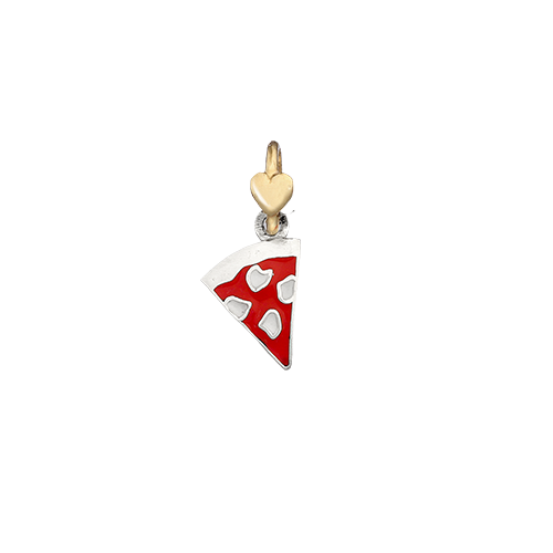 Ciondolo in argento 925 con contromaglia cuoricino in oro giallo 9kt e smalto soggetto pizza "mi fai innamorare"
