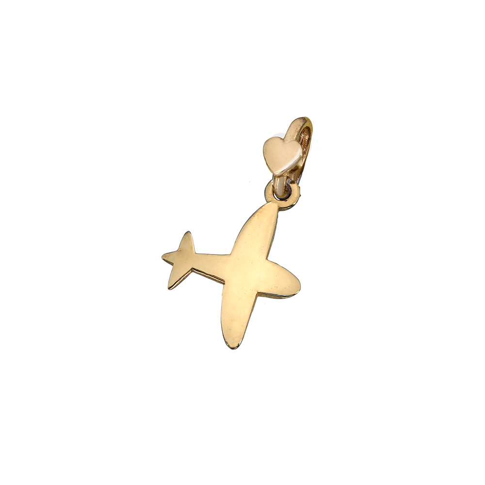 Ciondolo in argento 925 dorato con contromaglia cuoricino in oro giallo 9kt della collezione souvenir soggetto aereo “mi fai volare”