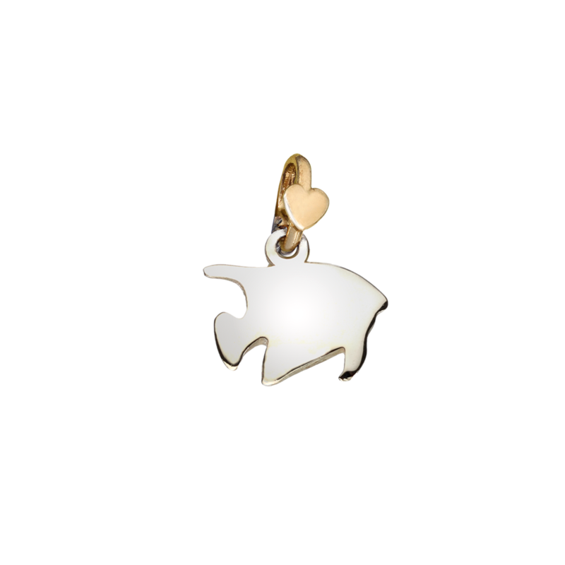 Ciondolo in argento 925 con contromaglia cuoricino in oro giallo 9kt della collezione souvenir soggetto pesce tropicale “non abbocco”