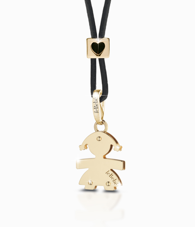 Pendente femminuccia donna le bebe, lbb 007, collezione cuccioli, bimba, in oro 9 kt GIALLO, corredato di distanziatore in oro e cordino.