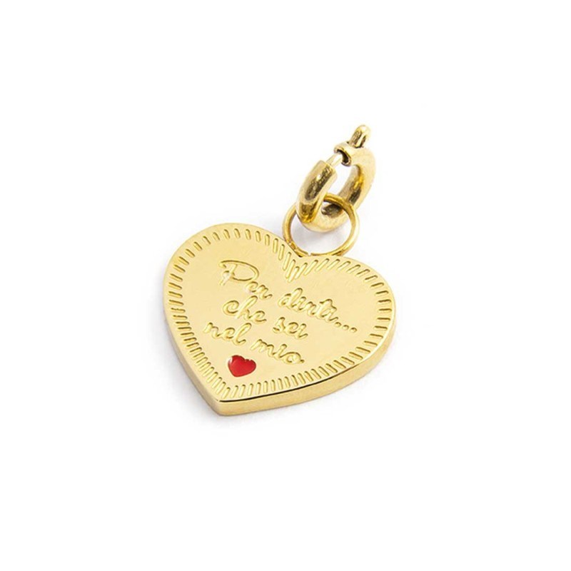 Ciondolo donna marlù, 15CH153R, collezione nel mio cuore, in acciaio dorato, zircone bianco e smalto rosso