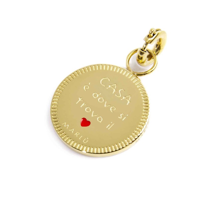 Ciondolo unisex marlù', 15CH162R, collezione nel mio cuore, in acciaio dorato e smalto rosso, diametro 1, 2cm