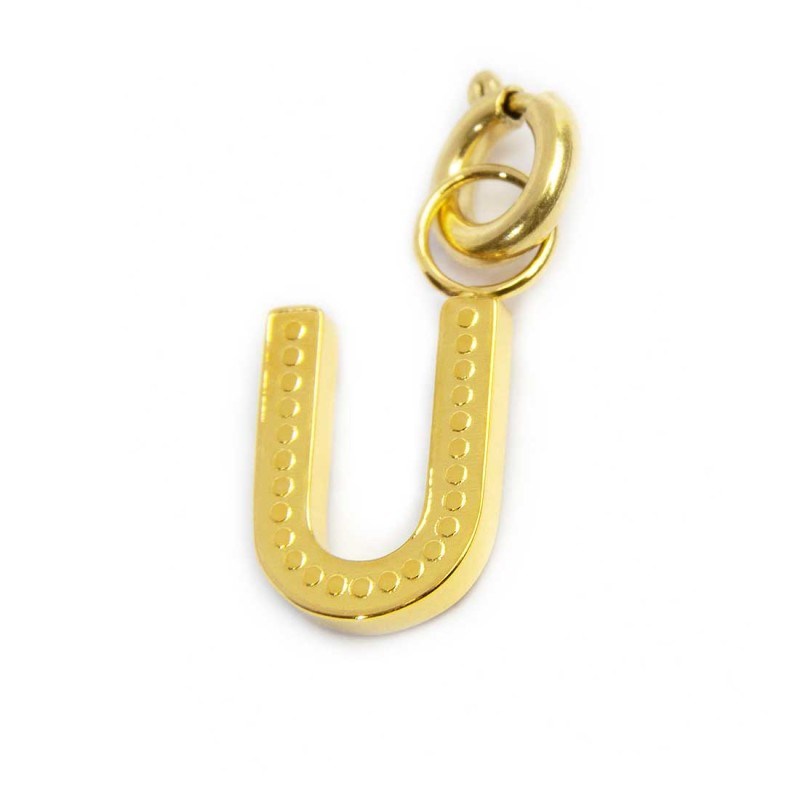 Ciondolo unisex marlù, 18CH133GW-u, collezione time to, in acciaio dorato e cristallo, lettera u