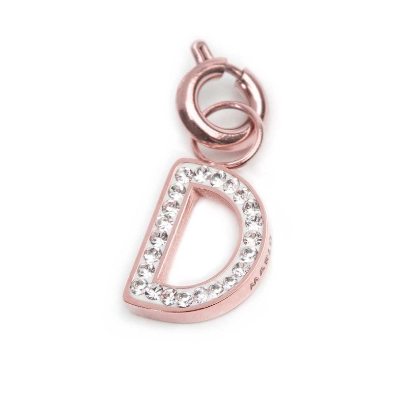 Ciondolo unisex marlù, 18CH133RW-d, collezione time to, in acciaio rosato e cristallo, lettera d
