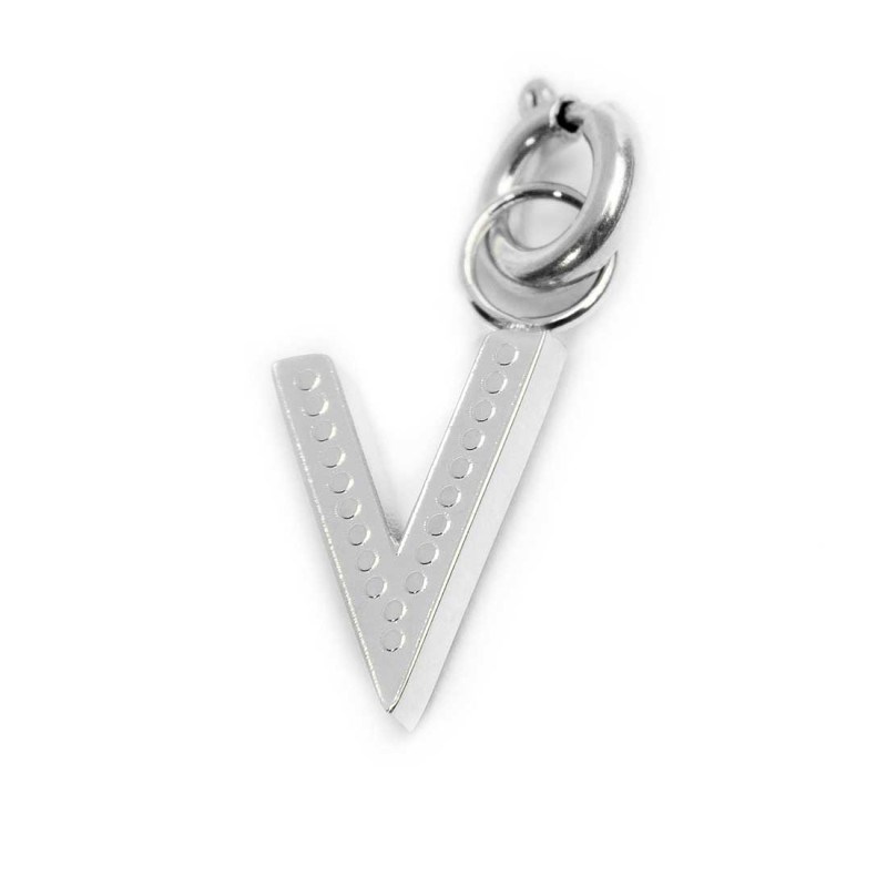Ciondolo unisex marlù, 18CH133W-V, collezione time to, in acciaio e zirconi, lettera V