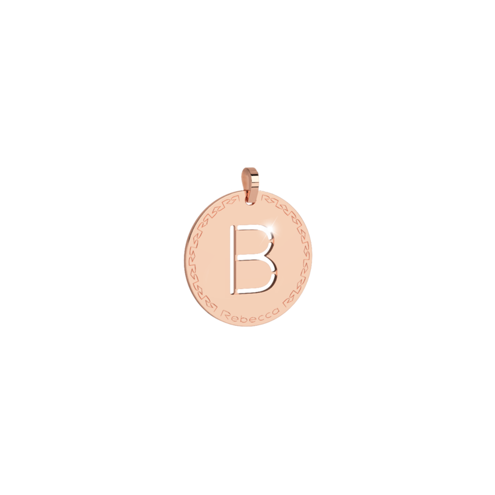Pendente donna rebecca, Bwrprb52, collezione myworld alphabet, in bronzo placcaro oro rosa per comporre la tua collana