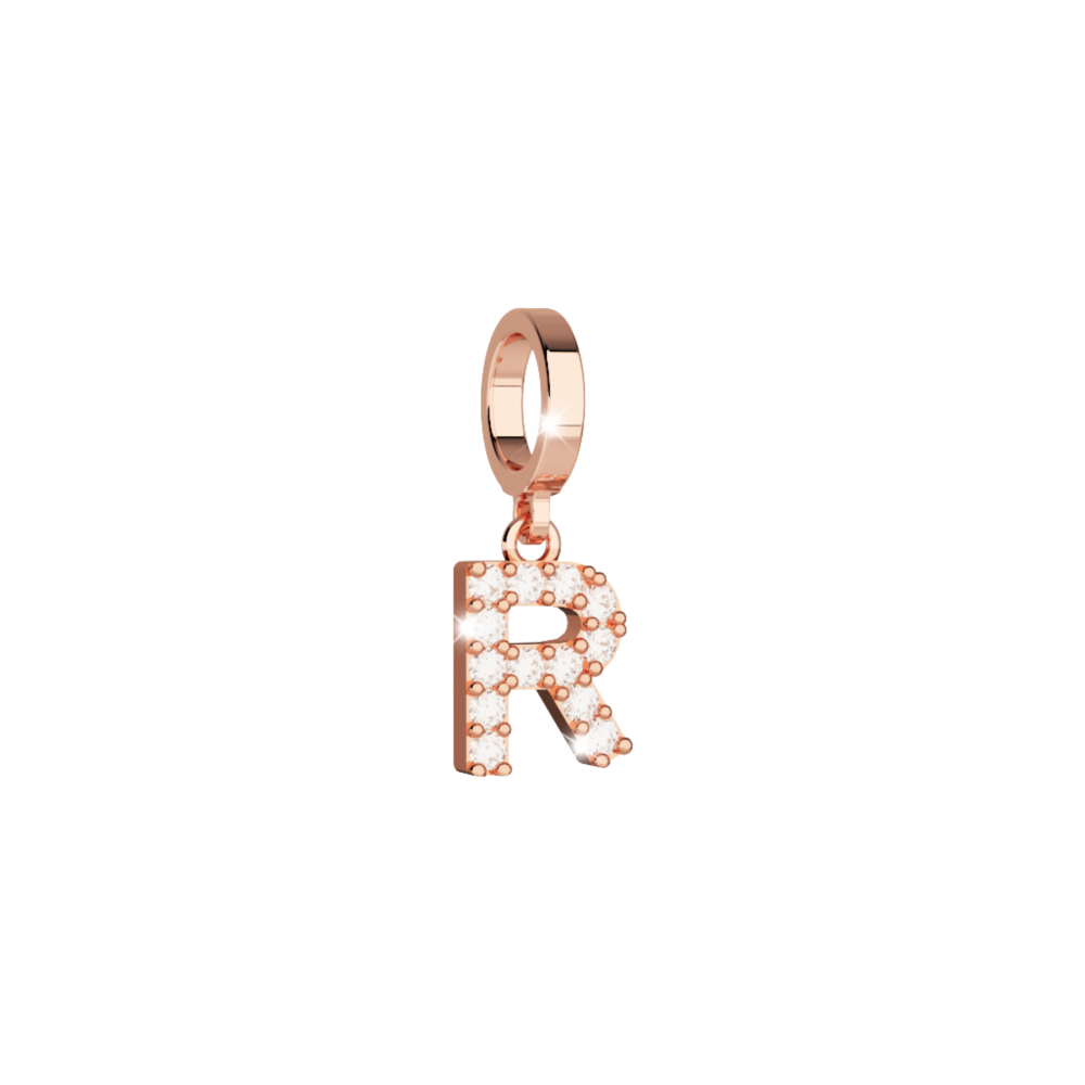 Charm donna rebecca, Bwmprr68, collezione myworld charms, in bronzo placcato oro rosa e zirconi per comporre il tuo bracciale