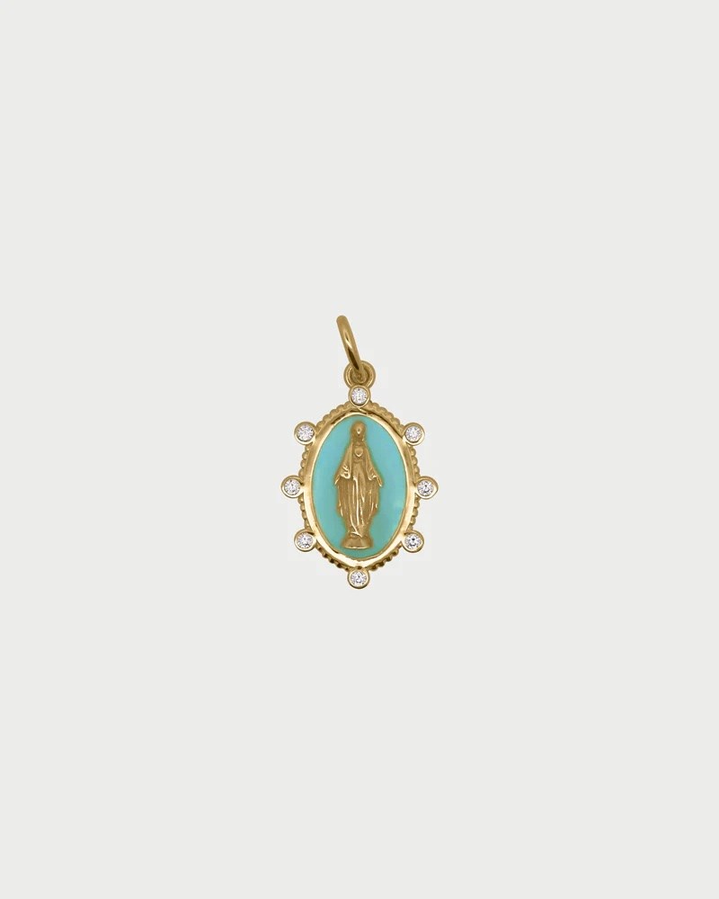 Ciondolo donna rue de mille, CB-CN 30, collezione charm bar, in argento 925 placcato oro 18kt e smalto turchese, misura charm altezza 2cm