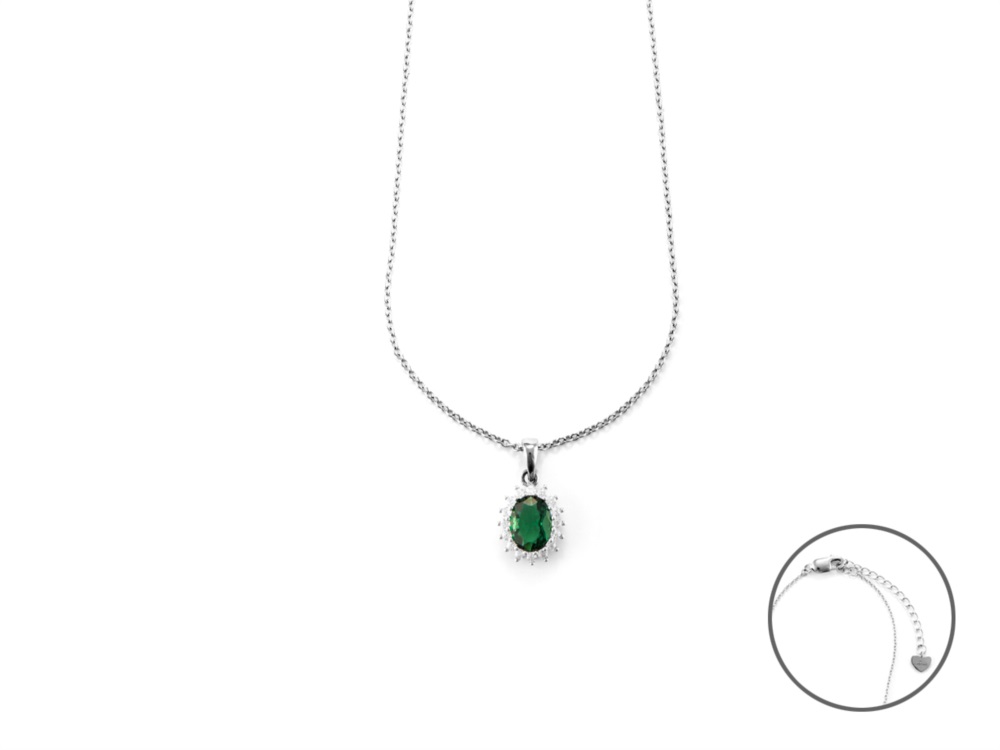 Collana donna 4us cesare paciotti, 4UCL6057W, collezione autunno inverno, in argento 925 rodiato e zirconi bianchi e uno verde, lunghezza 40cm+5cm di estensione