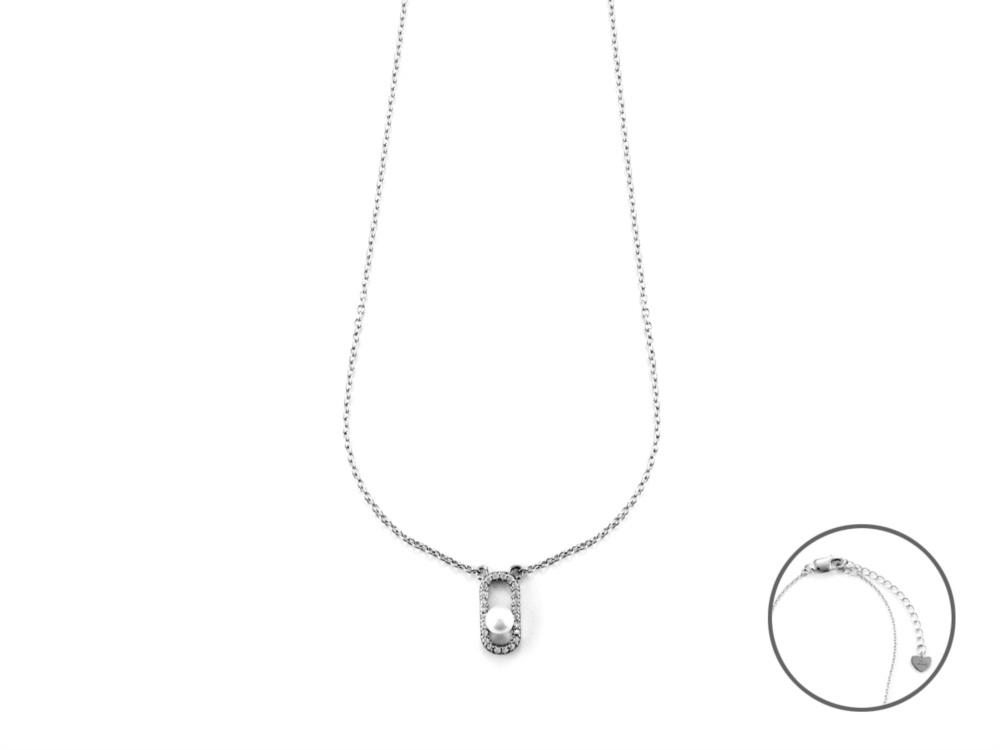 Collana donna 4us cesare paciotti, 4UCL6098W, collezione autunno inverno, in argento 925 rodiato con zirconi bianchi e perla, lunghezza 40cm+5cm di estensione