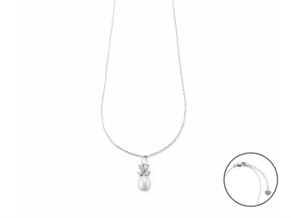 Collana donna 4us cesare paciotti, 4UCL6101W, collezione autunno inverno, in argento 925 con perle e zirconi bianchi, lunghezza 40cm+5cm di estensione