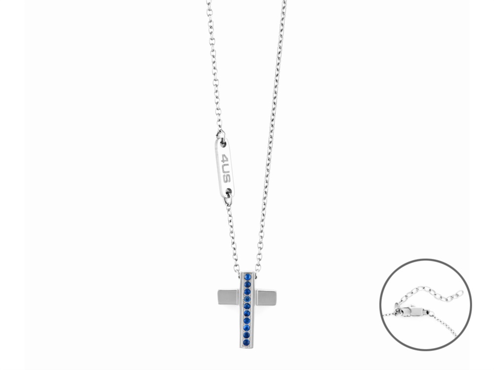 Collana uomo 4us cesare paciotti, 4UCL6133, collezione autunno inverno, in acciaio e zirconi blu, lunghezza 50cm+5cm di estensione