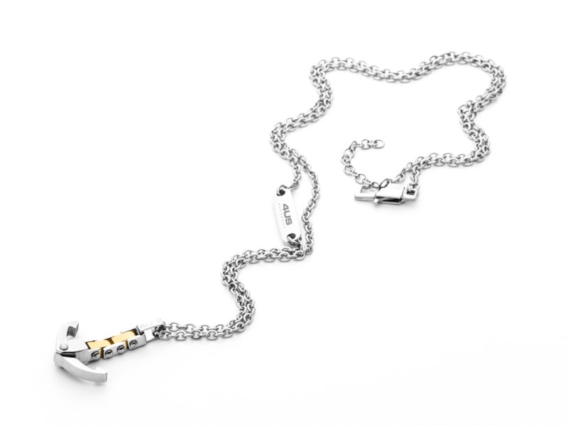 Collana uomo 4us cesare paciotti, 4UCL4980, collezione primavera estate, in acciaio/acciaio dorato, lunghezza 50cm+5cm regolabile