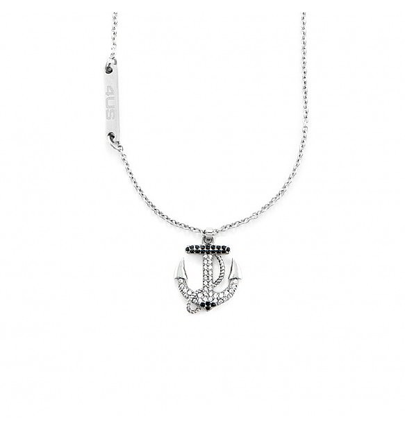 Collana uomo 4us cesare paciotti, 4UCL6366, collezione primavera estate, in acciaio anallergico e zirconi, pendente a forma di ancora, lunghezza 50+5