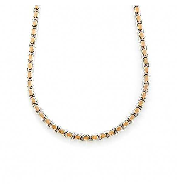 Collana uomo 4us cesare paciotti, 4UCL6401, collezione primavera estate, in acciaio anallergico, bicolore argentato e dorato, lunghezza 50+5