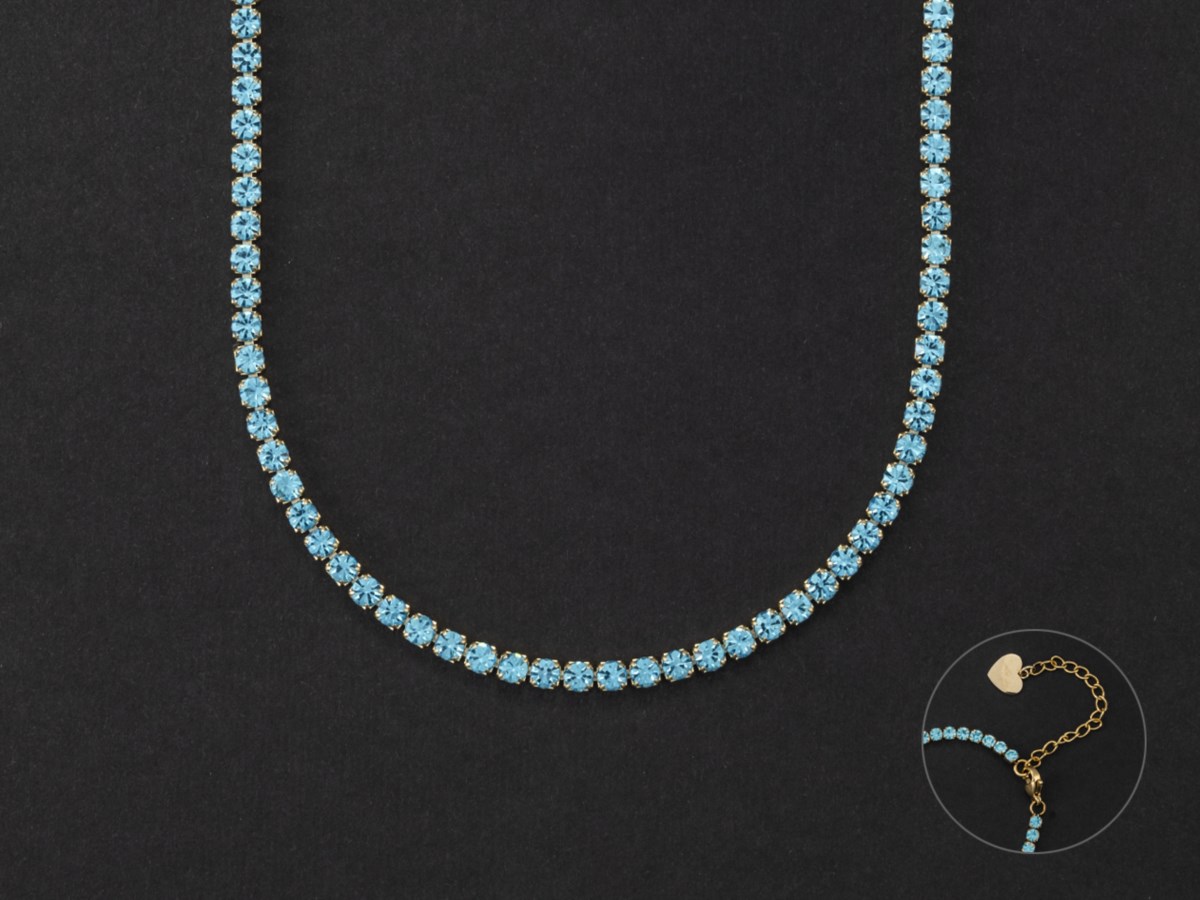 Collana donna 4us cesare paciotti, 4ucl5465w, collezione san Valentino, in acciaio dorato con cristalli celesti, lunghezza 40cm+5cm