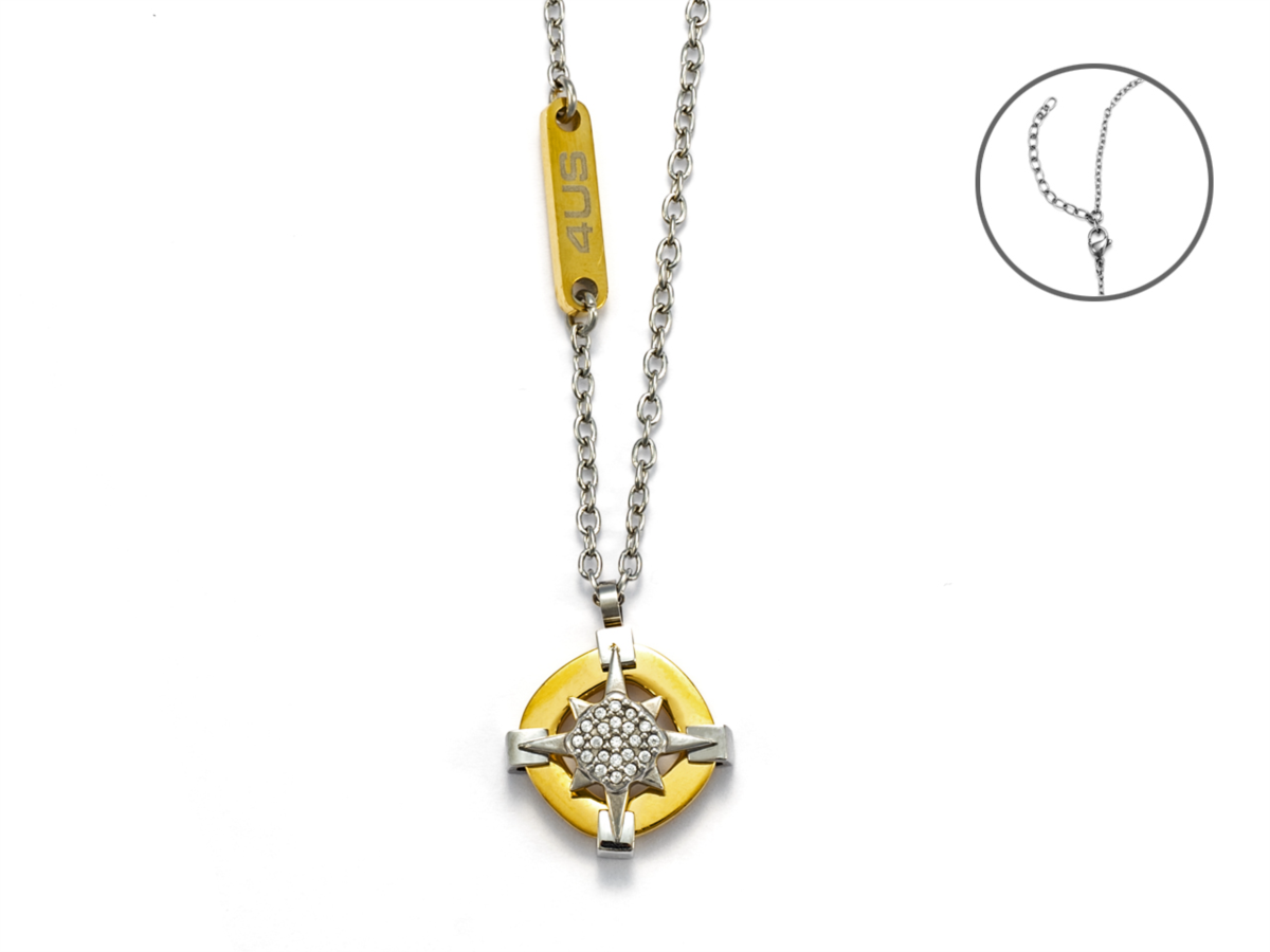 Collana uomo 4us cesare paciotti, 4UCL5576, collezione san valentino, in acciaio/acciaio dorato e zirconi bianchi, lunghezza 50cm + 5cm di estensione