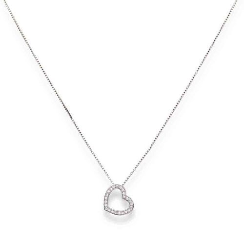 Collana donna amen, Clhe2, collezione amore, in argento 925 rodiato, pendente cuore con zirconi, lunghezza 42cm