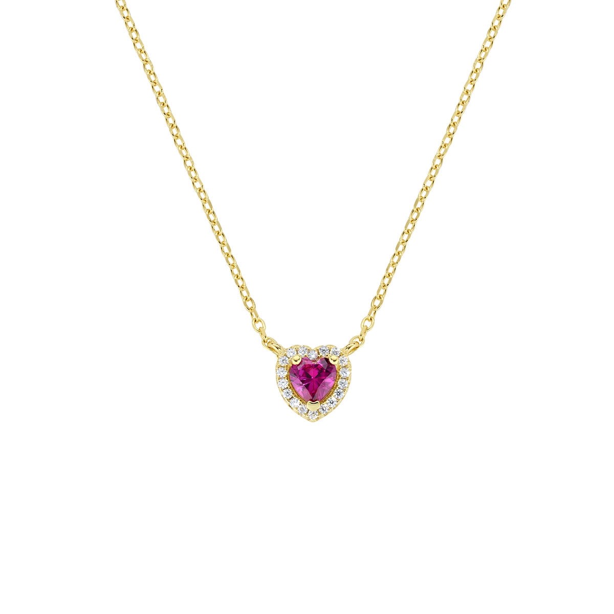 Collana donna amen, CLTICUGRZ, collezione amore infinito, in argento 925 dorato, zircone rosso rubino e zirconi bianchi.