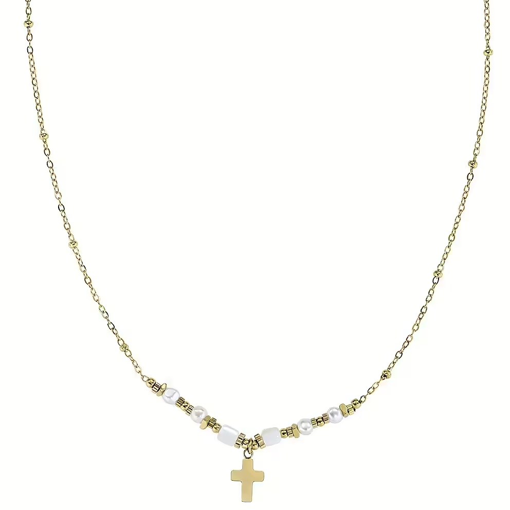 Collana donna amen, ACCL818377G, collezione croci, in acciaio dorato, misura 40cm+5cm