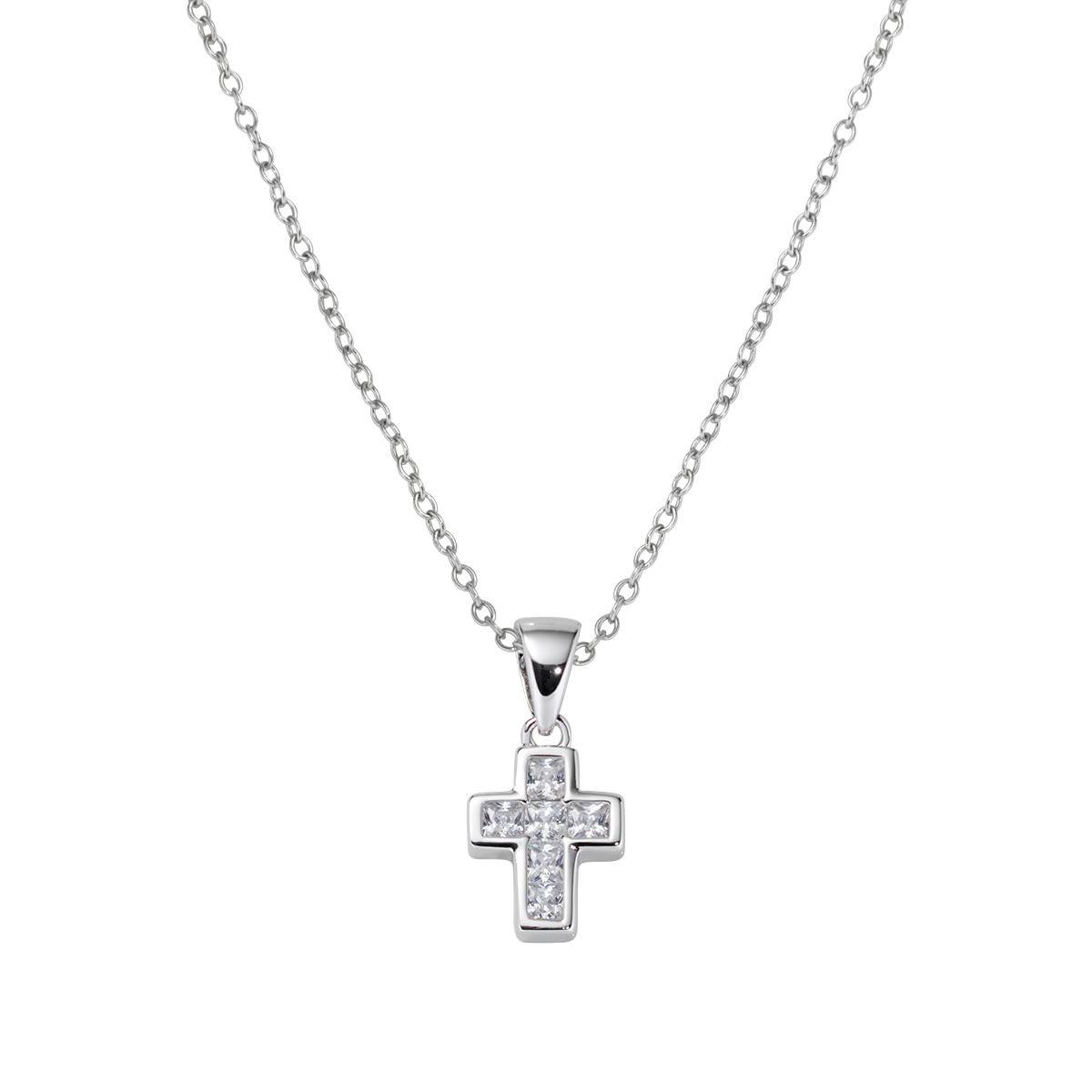 Collana donna amen, CLCCBBZ3, collezione croci, in argento 925 rodiato con zirconi bianchi, lunghezza 40cm+5cm, croce 9mm