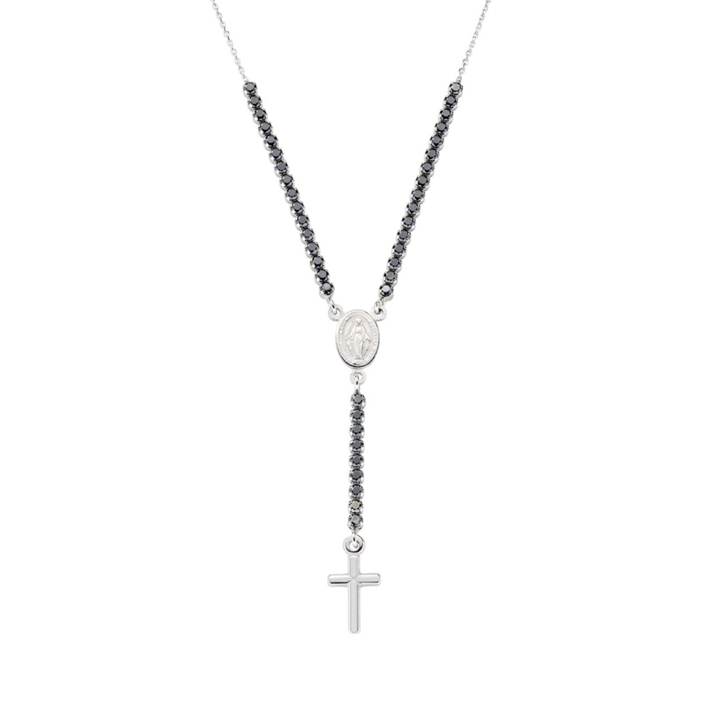 Collana donna amen, Clcrmibnz4, collezione croci, in argento 925 con zirconi neri, Lunghezza 38 + 4 + 4 cm