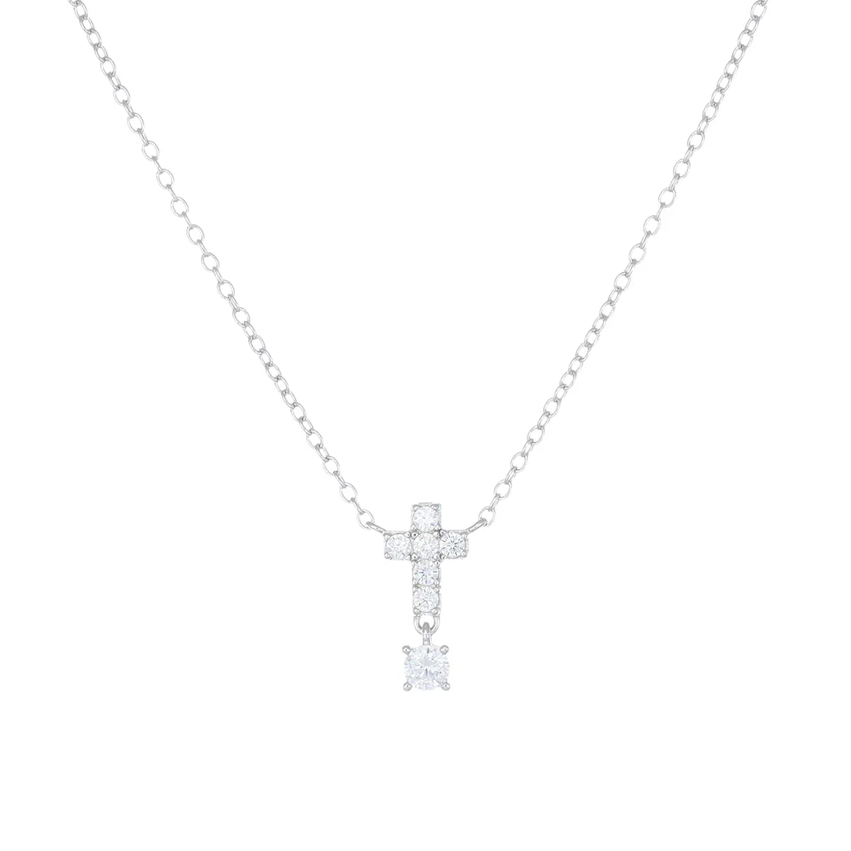 Collana donna amen, CLPCBBZ, collezione croci, in Argento 925 rodiato, Pendente con croce e piccolo punto luce di zirconi bianchi, Lunghezza regolabile da 38 a 43 cm con chiusura a moschettone