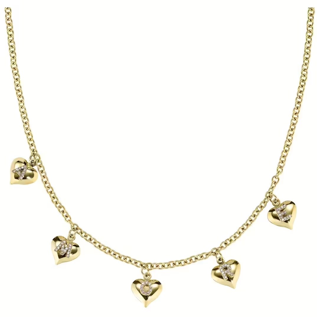 Collana donna amen, ACCL815055G, collezione cuori, in acciaio dorato e zirconi, misura 40cm+5cm