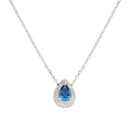 Collana donna amen, Clgobblbz, collezione diamond, in argento 925 con zirconi bianchi e blu, lunghezza 40cm+5cm