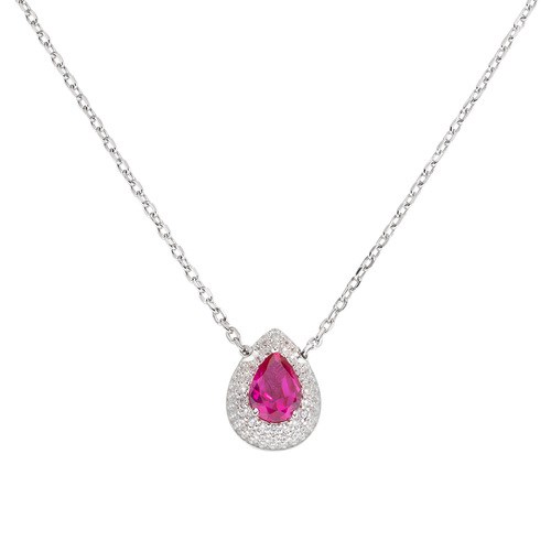 Collana donna amen, Clgobrbz, collezione diamond, in argento 925 con zirconi bianchi e rossi, lunghezza 40cm+5cm