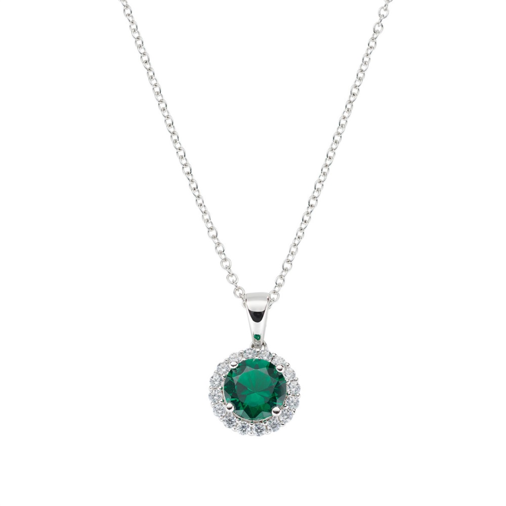 COLLANA DONNA AMEN, CLLUBOBBVZ, COLLEZIONE DIAMOND, IN ARGENTO 925, CON ZIRCONI BIANCHI E VERDE, DIMENSIONE ZIRCONE 7MM, LUNGHEZZA COLLANA 40CM + 5CM DI ESTENSIONE