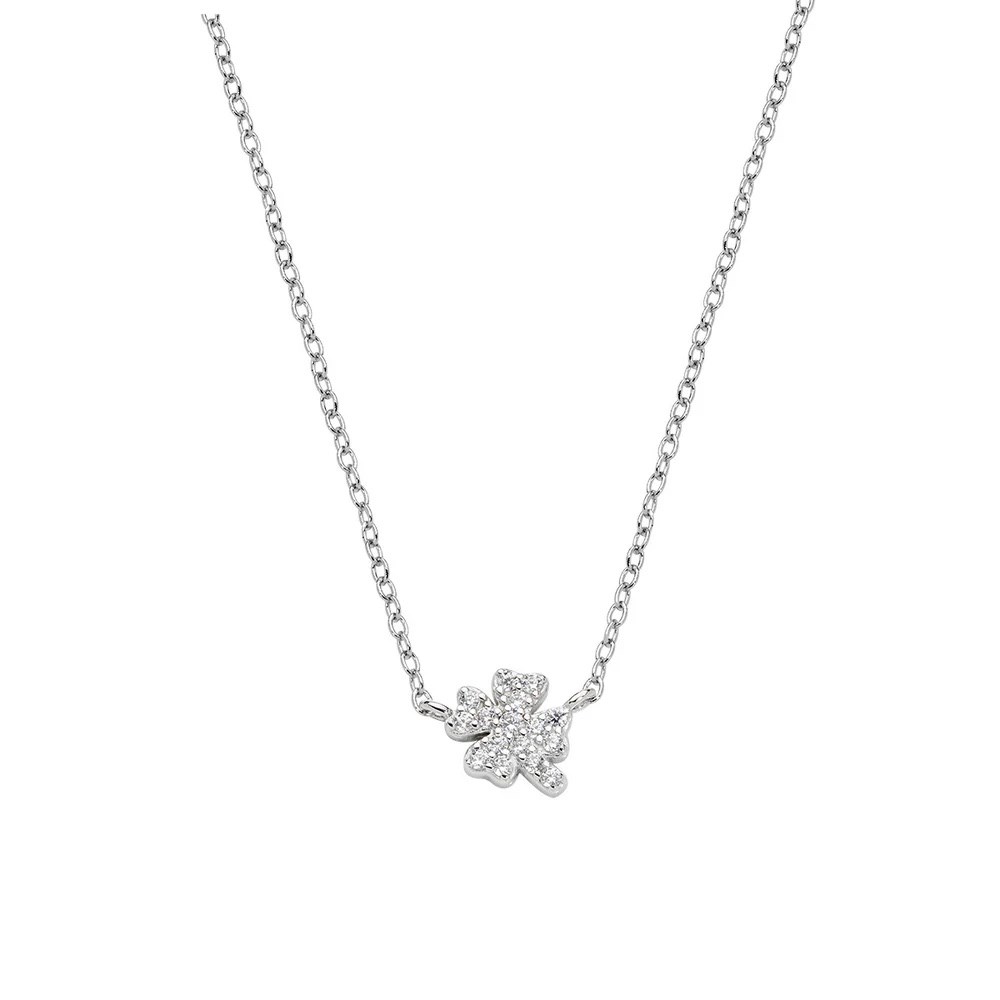 Collana donna amen, CLQUPBBZ3, collezione fortuna, in argento 925 rodiato con piccolo charm quadrifoglio da 7 mm e pavé di zirconi bianchi.