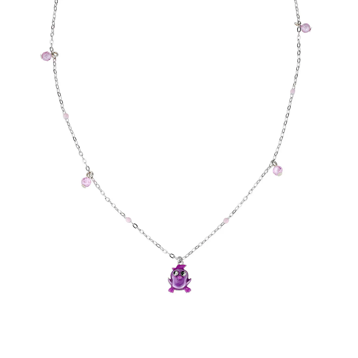 Collana unisex amen, JCLBIB, collezione junior, in argento 925 con pendente e smalto viola.