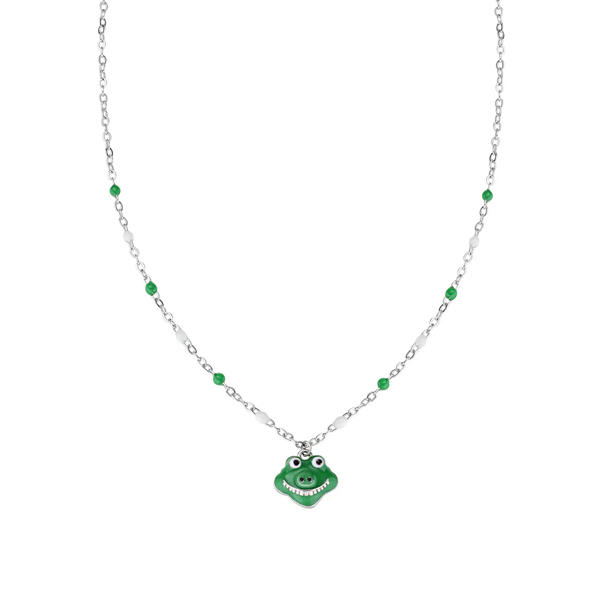 Collana unisex amen, JCLFRB, collezione junior, in argento 925 rodiato con pendente e smalto verde, bianco e nero.