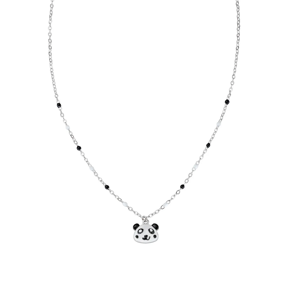 Collana unisex amen, JCLPAB, collezione junior, in argento 925 rodiato con pendente e smalto bianco e nero.