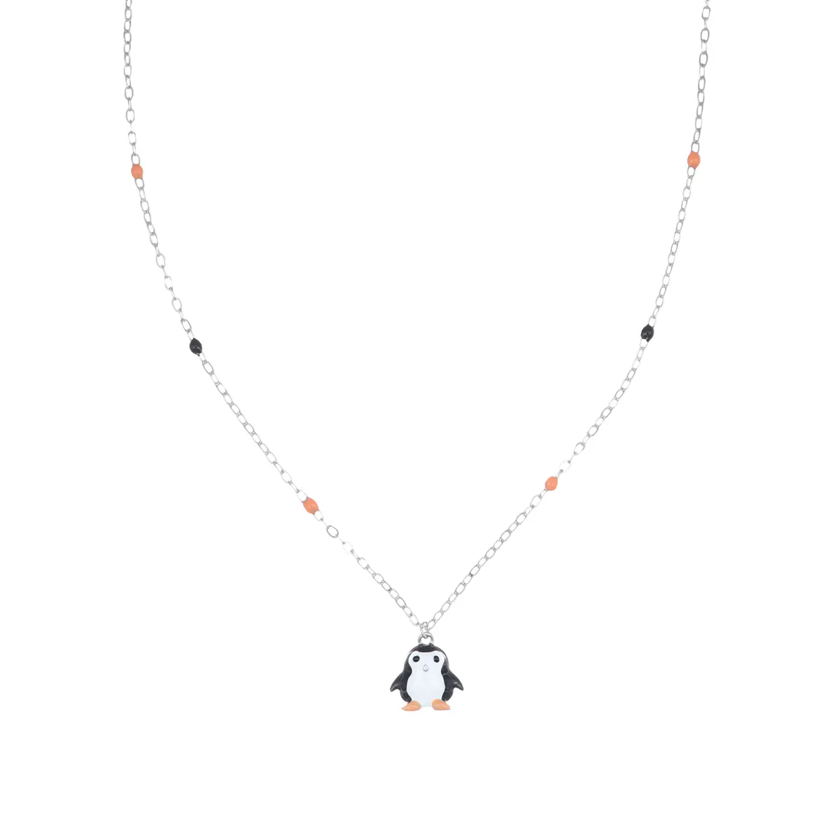 Collana unisex amen, JCLPEB, collezione junior, in argento 925 rodiato con pendente e smalto nero, bianco e arancione.