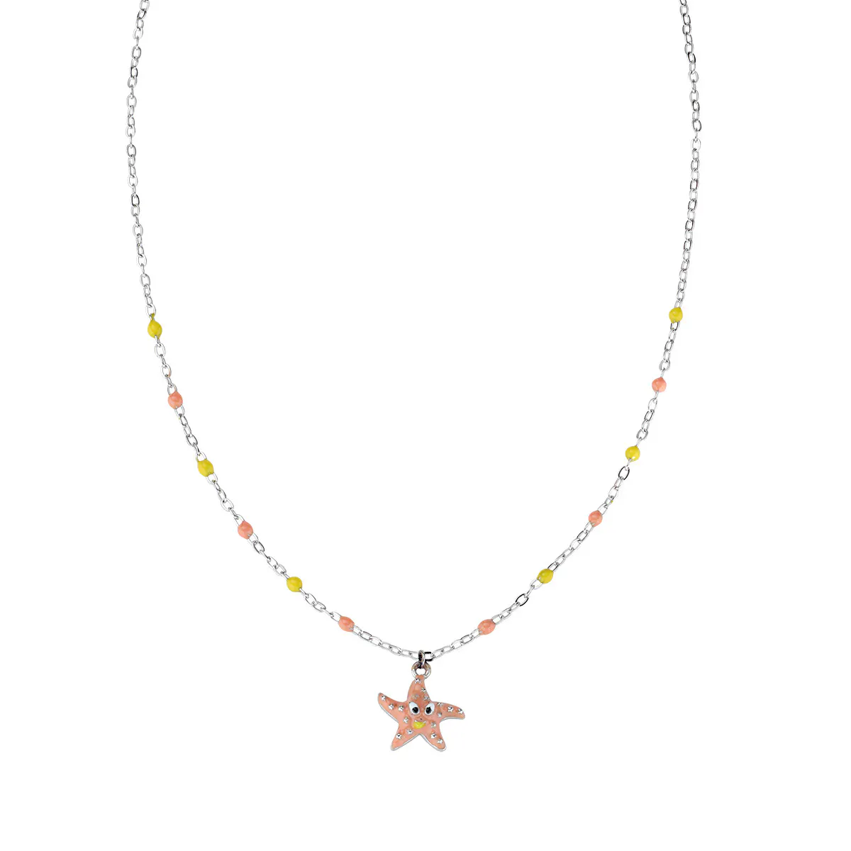 Collana unisex amen, JCLSFB, collezione junior, in argento 925 rodiato con pendente e smalto arancione, giallo e nero.