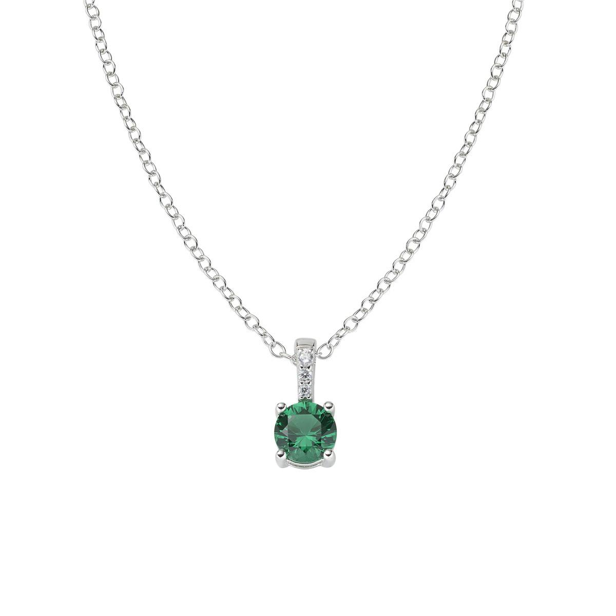 Collana donna amen, CLCIPBBVEZ, collezione lady, in argento 925 rodiato abbraccia un zircone verde da 5 mm sormontato da zirconi bianchi. Lunghezza regolabile 40 cm - 45 cm