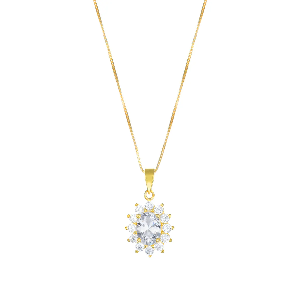 Collana donna amen, CLLDGGBB, collezione lady, in argento 925 dorato con zircone bianco taglio ovale e corona di zirconi.