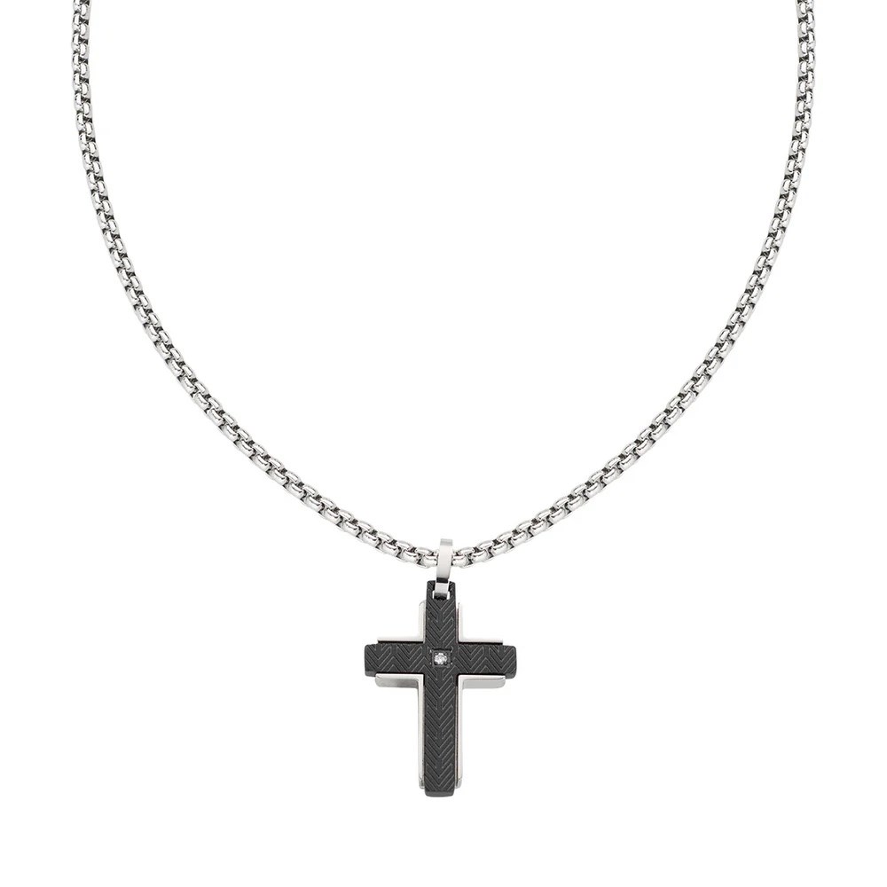 Collana uomo amen, ACCL107, collezione metropolitan, in acciaio 316 e zircone bianco - Pvd Nero - Lunghezza 47 + 3 cm