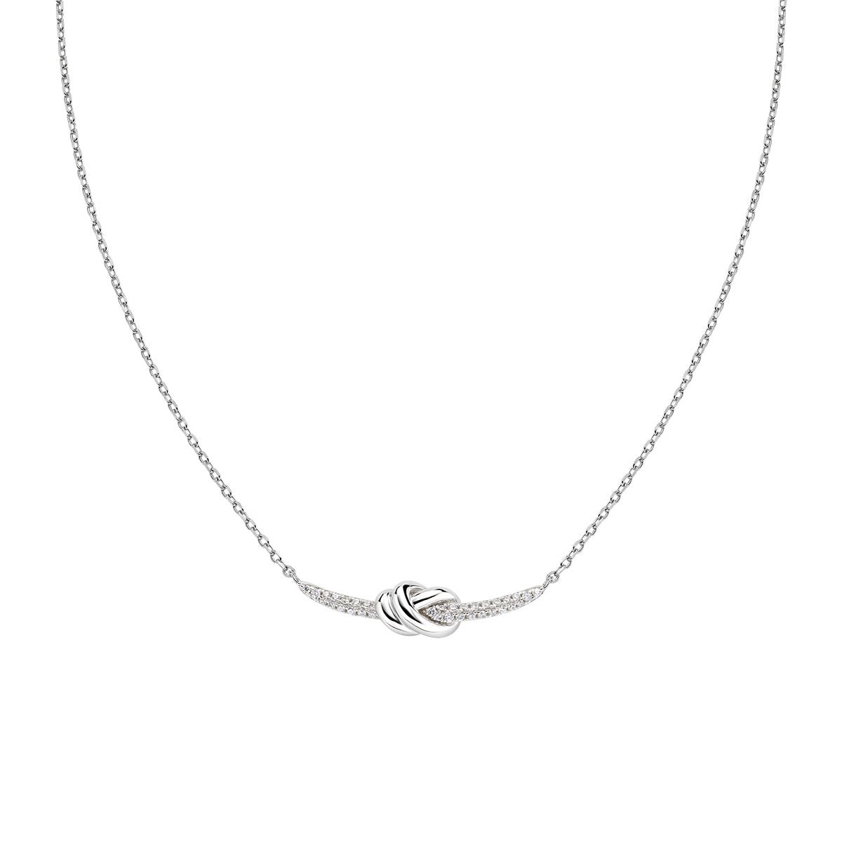 Collana donna amen, OTCLNOAMBZ, collezione nodo d'amore, in ottone a finitura rodiata con nodo centrale impreziosito da zirconi bianchi e lunghezza regolabile da 38 a 43 cm. Il Nodo d'Amore racconta l'intreccio tra due persone, unite in un legame e da un sentimento speciale.