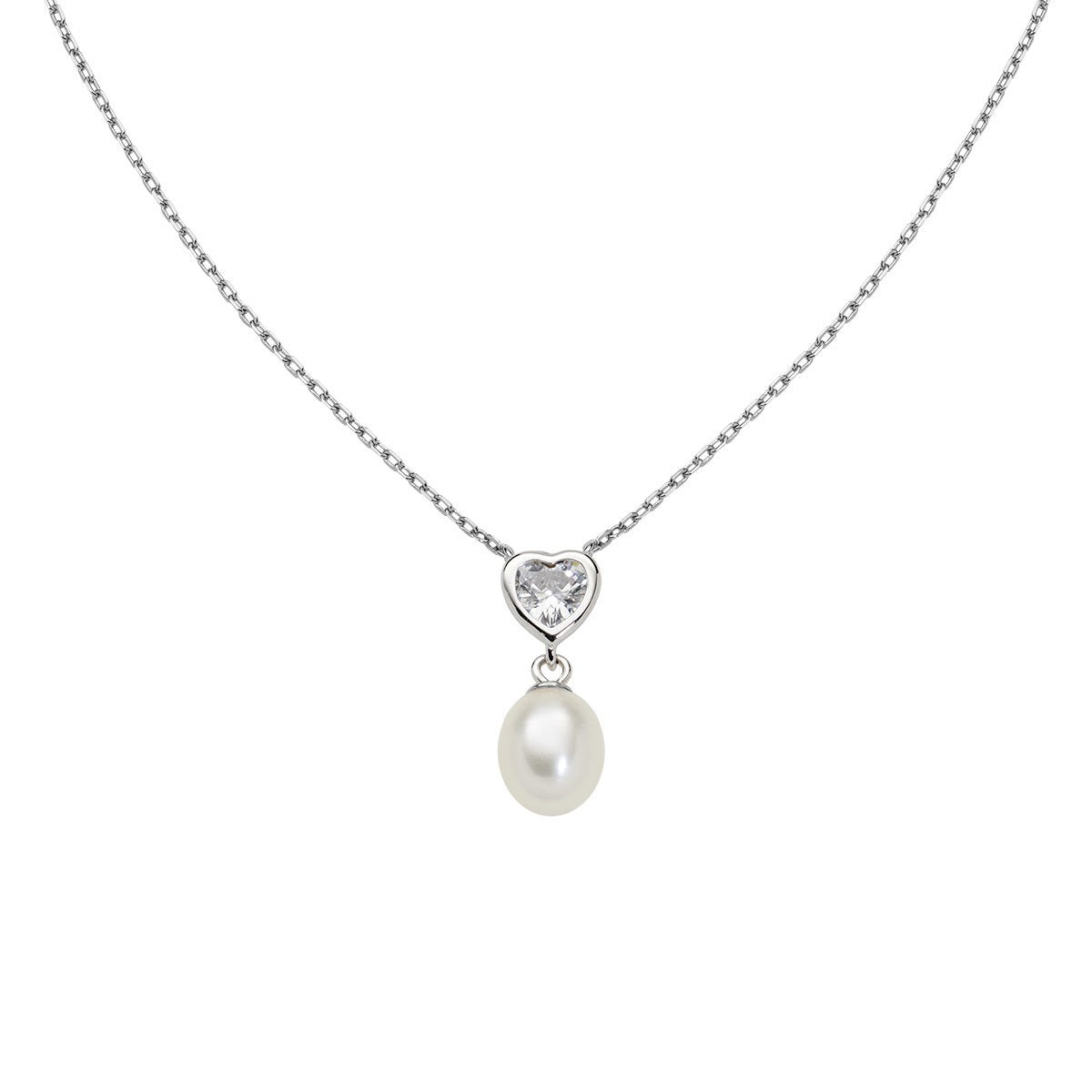 Collana donna amen, CLCUPEBBBZ3, collezione perle & madreperle, in argento 925 rodiato, pendente con zircone punto luce taglio cuore e perla a goccia di 7 mm.