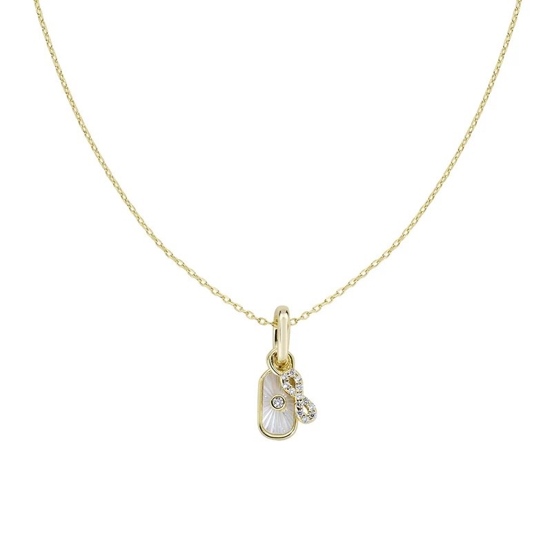 Collana donna amen, OTCLMARINGBZ1, collezione perle & madreperle, in ottone dorato con doppio charm in madreperla di 1, 7 cm e infinito di zirconi bianchi Lunghezza regolabile da 40 a 45 cm con allungo e chiusura a moschettone