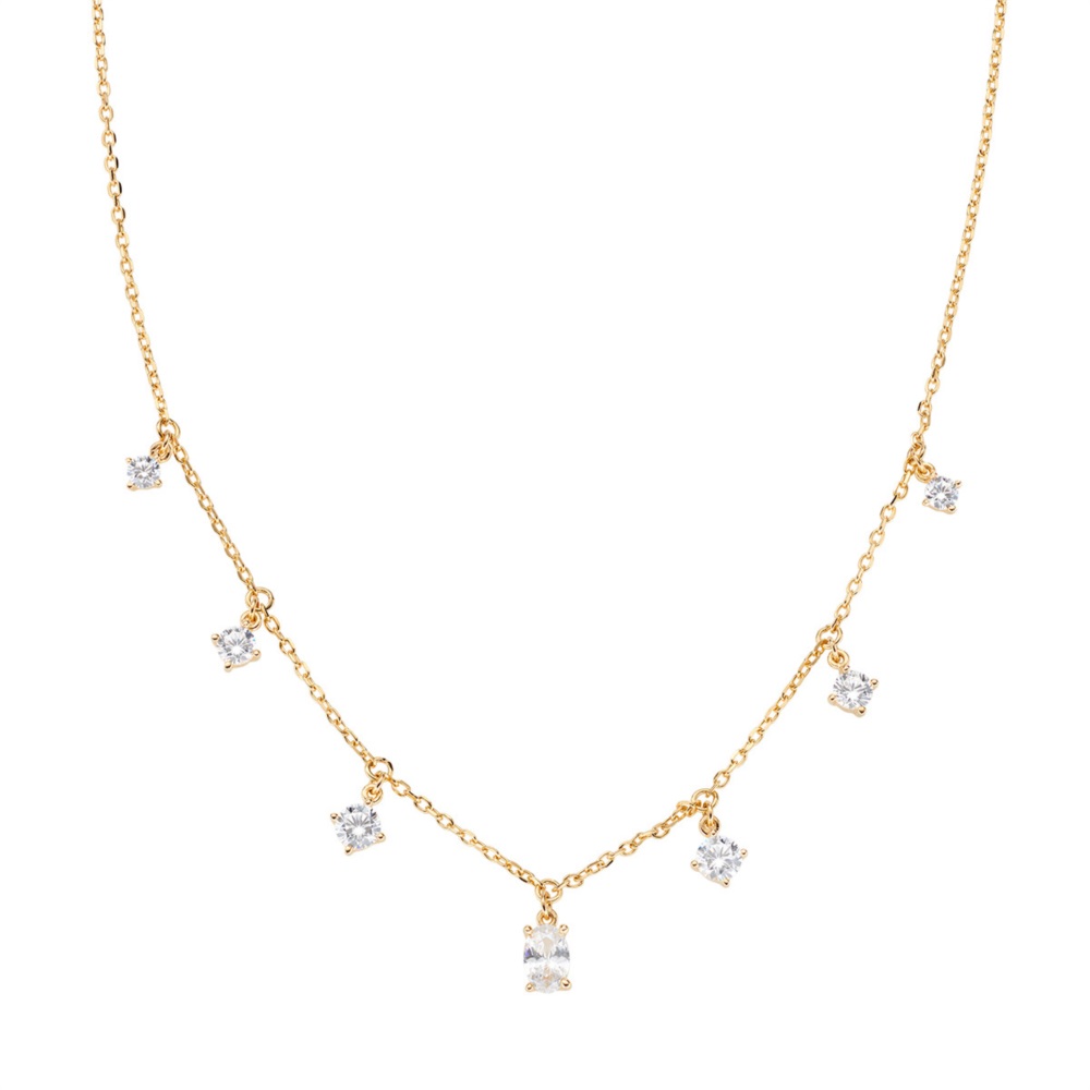 Collana donna amen, CLOVGBBZ3, collezione princess, in argento 925 dorato con zirconi bianchi, lunghezza 38cm+5cm di estensione