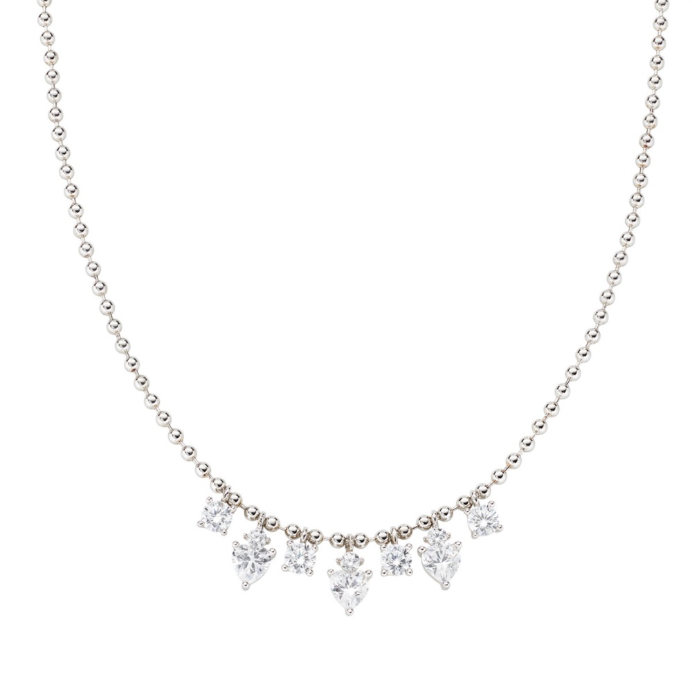 Collana donna amen, Clpacubbbz3, collezione princess, in argento 925 rodiato, con zirconi bianchi, lunghezza 40cm + 5cm di estensione