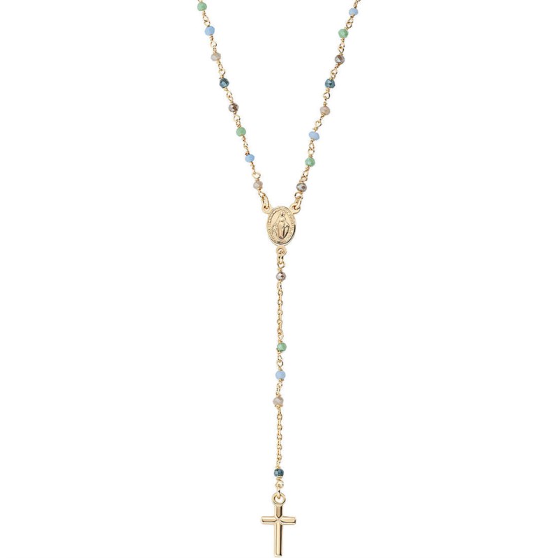 Collana donna amen, Cro25gmuv4, collezione rosari, in argento 925 dorato con cristalli, lunghezza 48cm regolabile